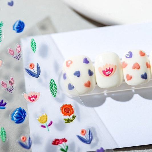 Hello Claws | Colourful Tulip Flower Embossed Pattern Design Nail Deco Sticker