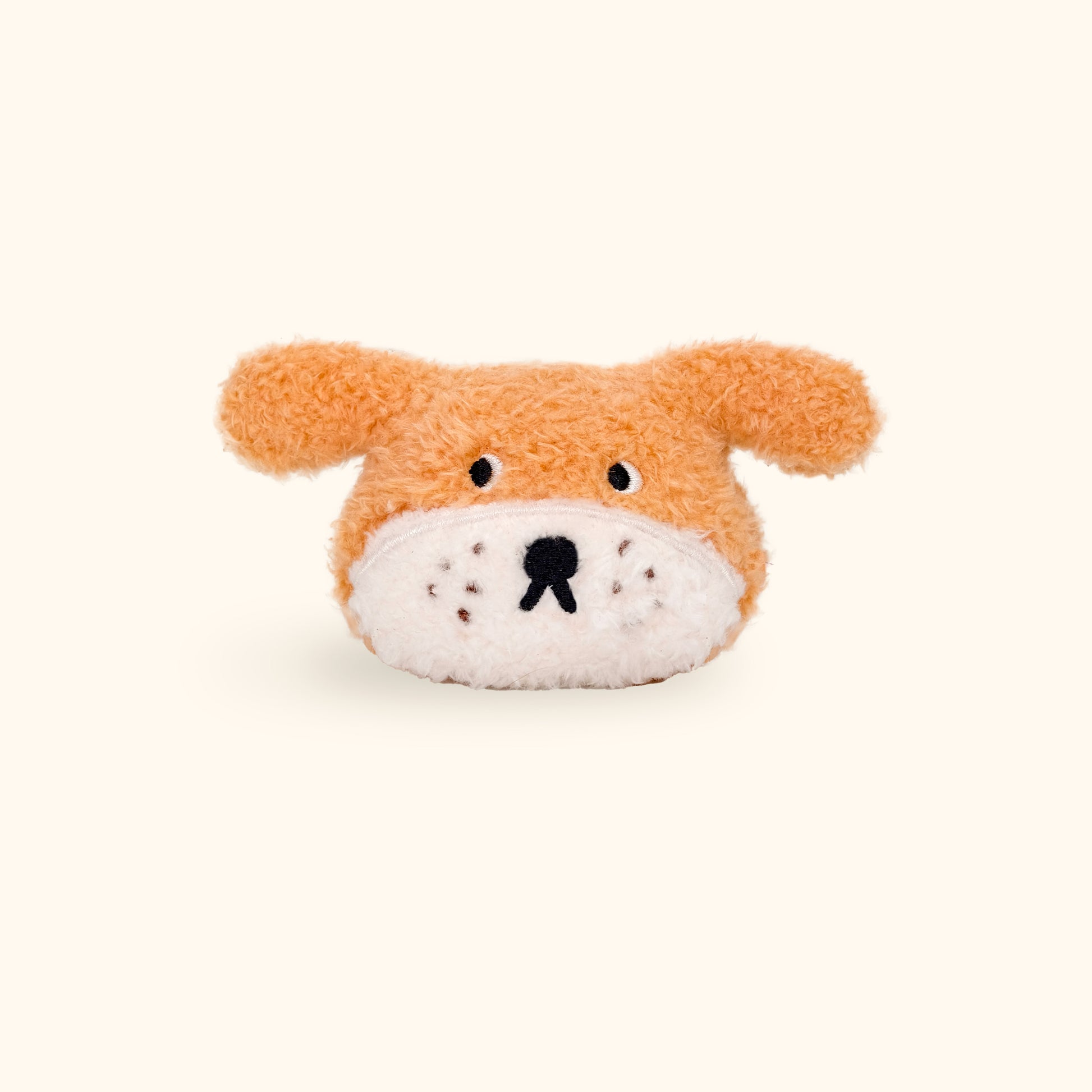 Crafted from ultra-soft, shaggy plush fabric in a warm golden-tan hue, this puppy features a fuzzy white muzzle complete with adorable embroidered freckles and a little black nose. It’s the perfect pocket-sized companion for dog lovers of all ages.