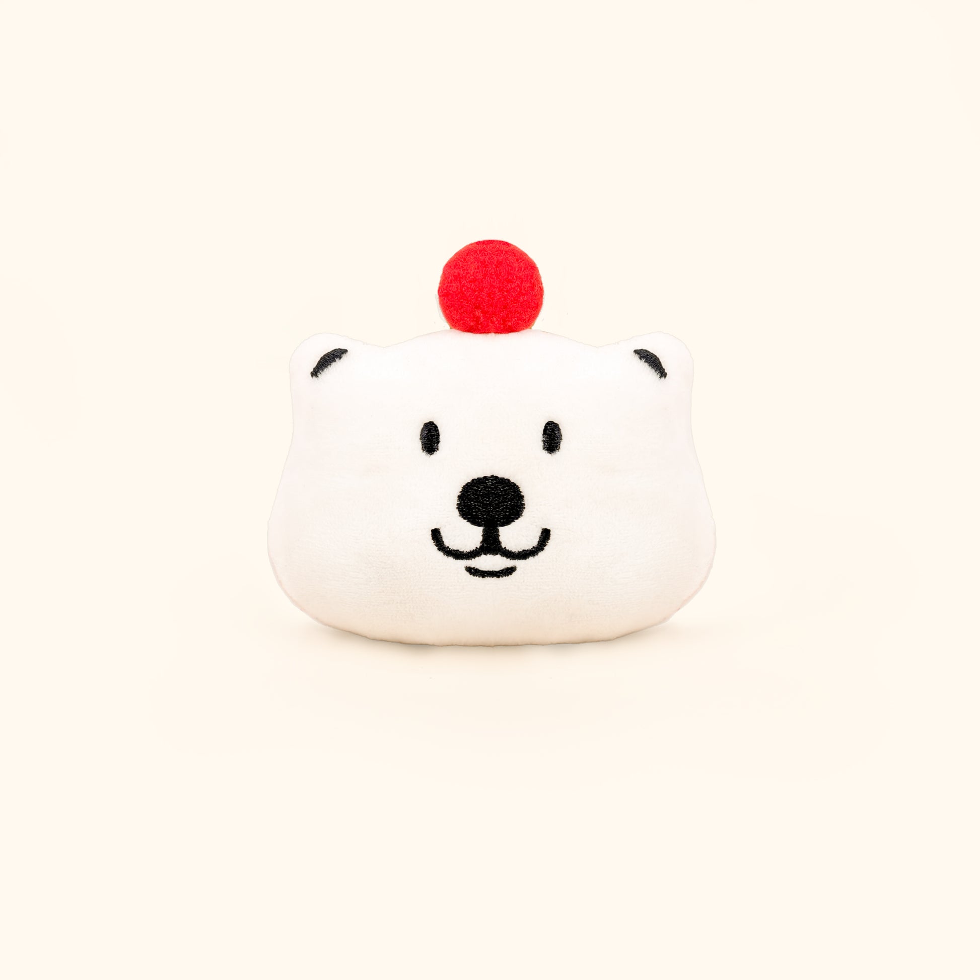 Bring a dash of adorable whimsy to your day with this Fluffy Polar Bear Charm! This unique plush is shaped like a sweet, white bear's head topped with a bright red apple. It's the perfect little companion to clip onto your backpack, or bag.