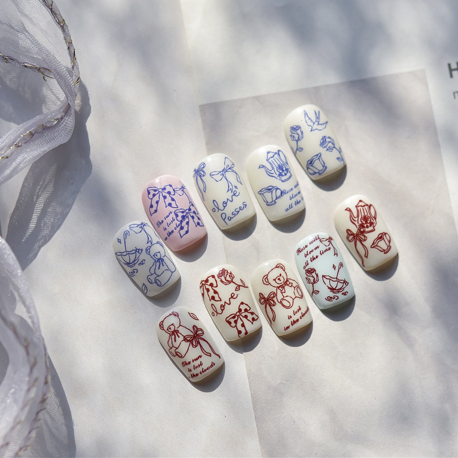 Get ready for a manicure revolution! Our nail deco stickers are designed for an intuitive and seamless application process. Simply peel, stick, and seal with your favorite top coat for a professional-looking finish that lasts. Made from an ultra-thin, flexible material, these stickers adhere perfectly to the curve of your nails for a smooth, undetectable look. They are compatible with natural nails, gel polish, acrylics, and more, making them a versatile addition to any nail care routine.